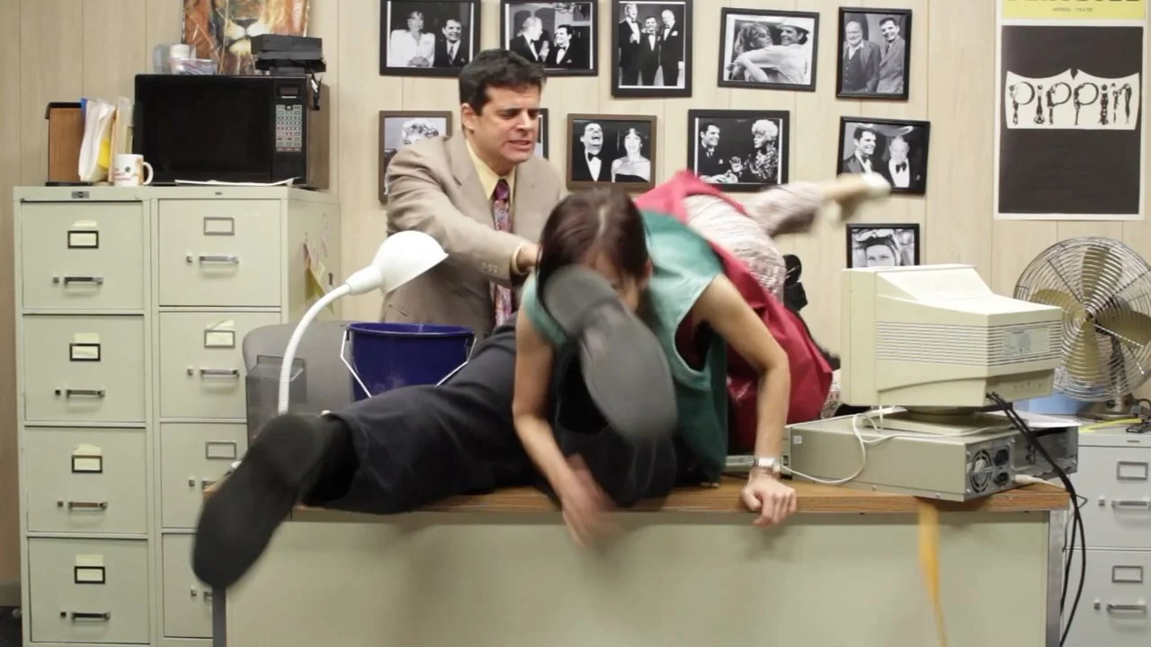 In full contact environment, I evaluate Multi-Body Contact Physics. This shot defines Anatomical Integrity—specifically the points where human limbs intersect with each other and with rigid environmental objects (the desk). I look for 'pixel-melding' and 'hallucinated appendages'.’ I confirm that the model maintains distinct object boundaries and consistent interaction during rapid, unpredictable physical movements.